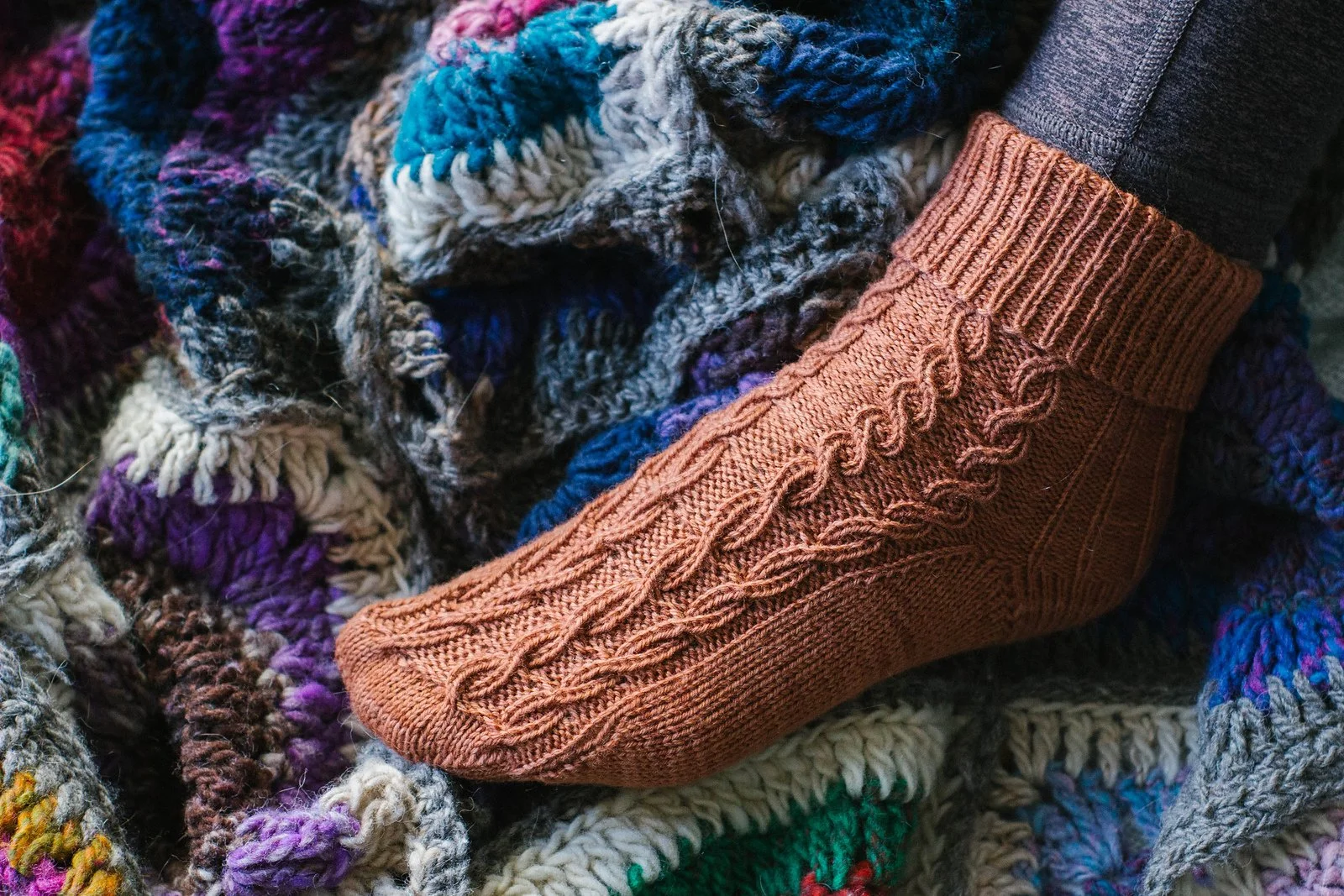 Full Circle Socks feature fully reversible cables and a snug fit, plus a cute turned cuff that looks great with short boots, sneakers, and clogs.